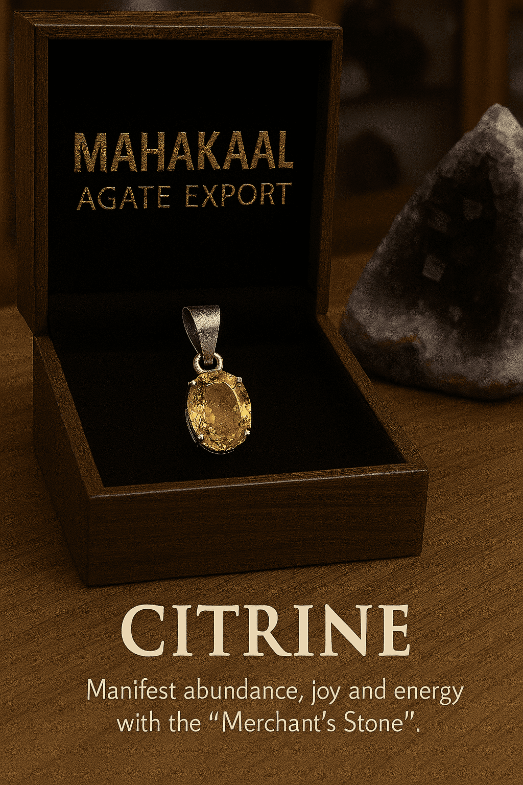 The Citrine Pendant is associated with financial growth and motivation.