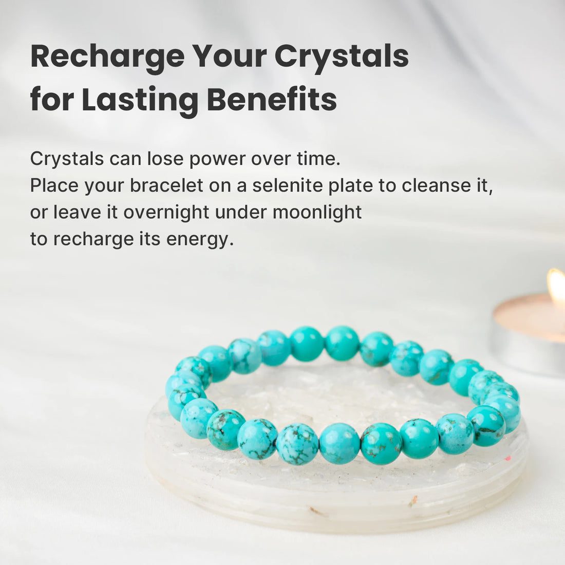 Often linked to the Throat and Heart Chakras, this stone supports honest communication, self-expression, and emotional healing. Wearing this bracelet is thought to help release negative emotions, promote patience, and strengthen emotional resilience.
